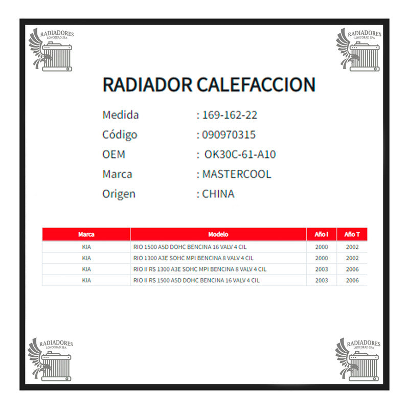 Radiador de Calefacción Kia Rio / Rio II (2000–2006)