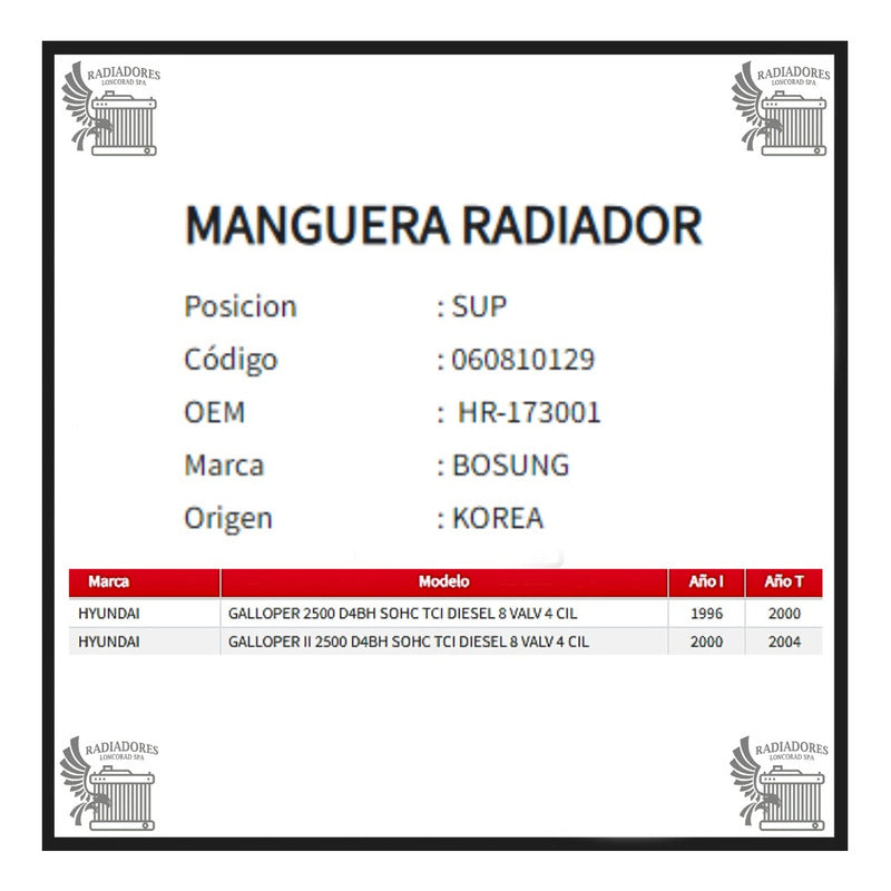 Manguera Radiador Hyundai Galloper 2.5 Superior 96-04