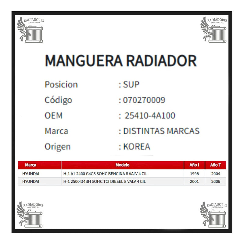 Manguera Radiador Hyundai Furgon H1 2.4/2.5 Superior 98-06